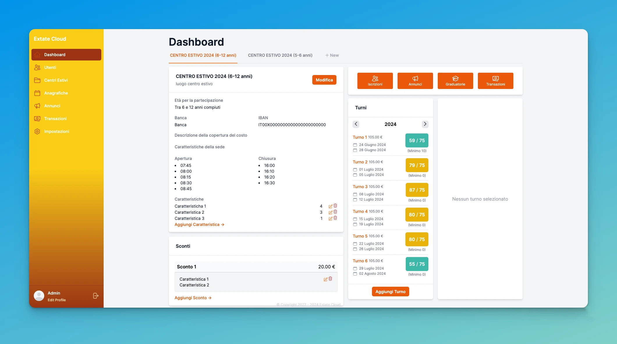 Il nostro gestionale è la tua soluzione completa per gestire il tuo centro estivo. Dalle iscrizioni online alle comunicazioni con i genitori, passando per la gestione delle attività e dei pagamenti, semplifichiamo ogni aspetto della tua organizzazione. Ottimizza il tuo tempo e offri un’esperienza indimenticabile ai bambini. Prenota un preventivo